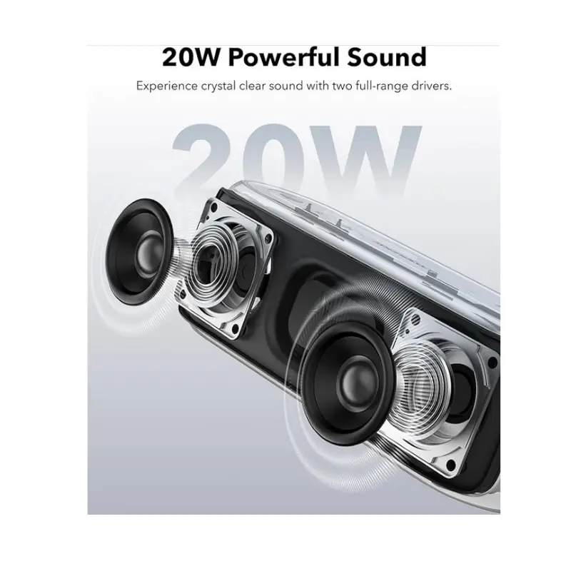 | 20W Stereo Sound and Dual Full-Range Drivers | Experience rich 20W stereo sound and clarity with this wireless Bluetooth speaker featuring dual full-range drivers. |