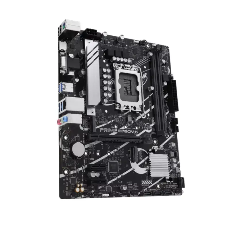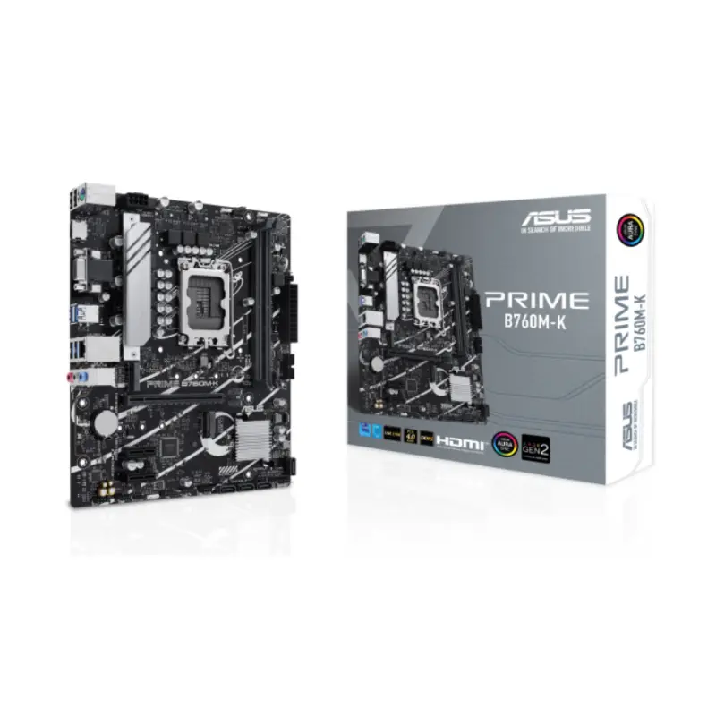 ASUS PRIME B760M-K е сигурна и модерна LGA1700 матична плоча дизајнирана за Intel процесори, вклучувајќи Celeron, Pentium и Core i3, i5, i7 и i9 серии. Со B760 чипсет, оваа плоча обезбедува стабилни перформанси и одлична основа за канцелариски, домашни и гејминг конфигурации.