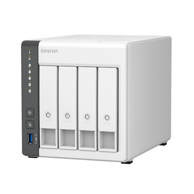 QNAP TS-433-4G е моќен и енергетски ефикасен 4-bay NAS сервер наменет за домашна и деловна употреба. Опремен со ARM 4-core Cortex-A55 2.0GHz процесор и 4GB RAM меморија, овој модел обезбедува стабилни перформанси за складирање, споделување и заштита на податоци.