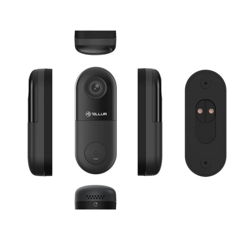 Двонасочната аудио комуникација овозможува брз одговор на вашите посетители, додека интегрираниот сензор за движење автоматски снима видео и испраќа push нотификација на вашиот смартфон. Со IP54 заштита од вода и прашина, ѕвончето е погодно за користење во сите временски услови, а контролата е целосно можна преку Tellur Smart апликацијата на 2.4GHz WiFi мрежа.