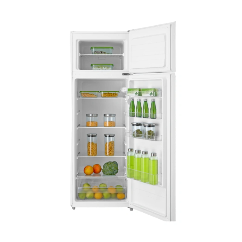 VIVAX HOME Fridge DD-235E W е висококвалитетен и просторен фрижидер дизајниран за домашна употреба и мали деловни простории. Со вкупен капацитет од 235 литри, од кои 194 литри се за фрижидерот, а 41 литар е за замрзнувачот, овозможува доволно простор за складирање на секојдневни намирници и замрзнати производи.