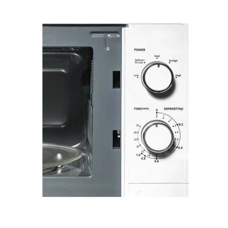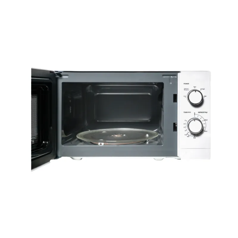 Со компактни димензии, оваа микробранова печка лесно се вклопува и во помали кујни, без да зазема многу простор. Дизајнот во бела боја, комбиниран со врата од пластика и стакло, нуди модерен и чист изглед кој одговара на секој ентериер.